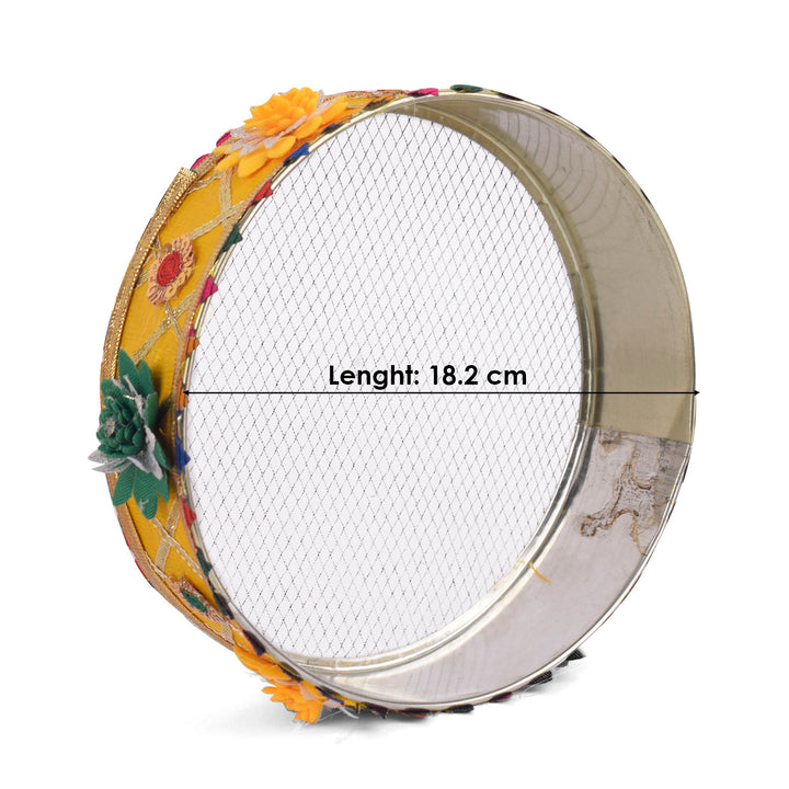 About Product: Karwa chauth beautiful Steel thali set includes a thali, Lota, Sieve for traditional and trendy way of karwa chauth pujan for all the married / engaged ladies and girls. Be attractive by using such a decorative piece of thali of puja for your love/ life. This thali can also be used on Diwali/ Deepawali Pujan. Karwa chauth thali set, karwa chauth thali, karwachauth thali platter, karvachauth thali platter, pooja thali set, steel puja thali set, complete karwachauth set, karwachouth set, designer thali set,hanmade thali set, Indian traditional set, karwachauth thali.