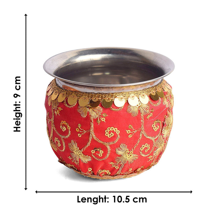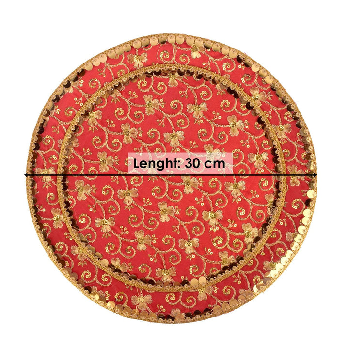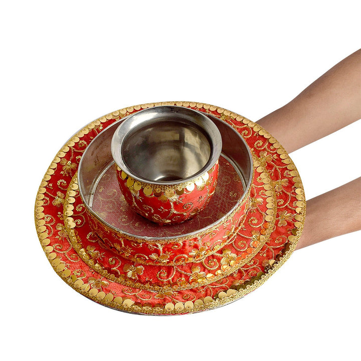 Elegant Red Embroidery Karwa Chauth Thali Set -3pc|Shop at Satvikworld.com