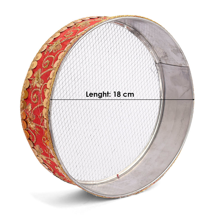 Elegant Red Embroidery Karwa Chauth Thali Set -3pc