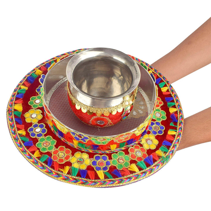 Item Name: Karwa Chauth Handmade Floral Thali Set - 3pc