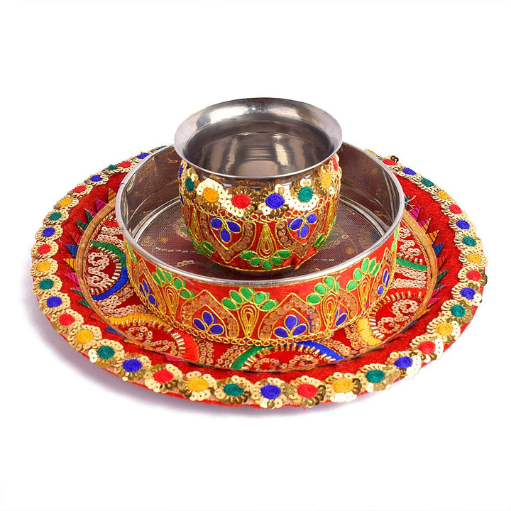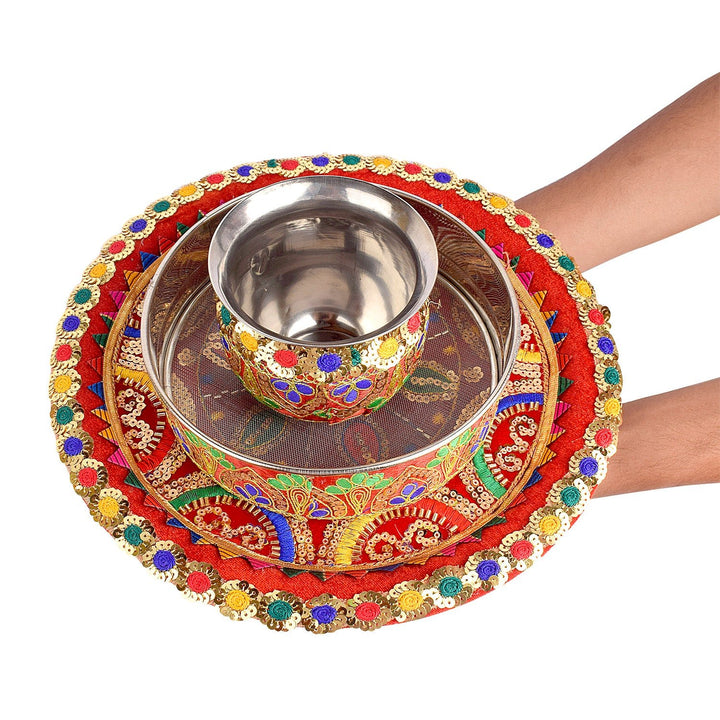 Vibrant Traditions Multicolor Karwa Chauth Thali Set - 3pc