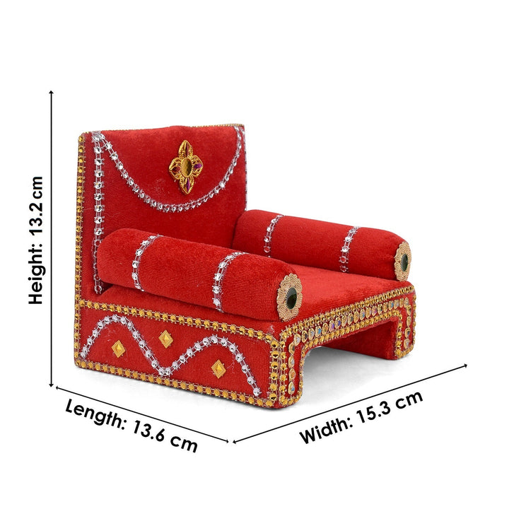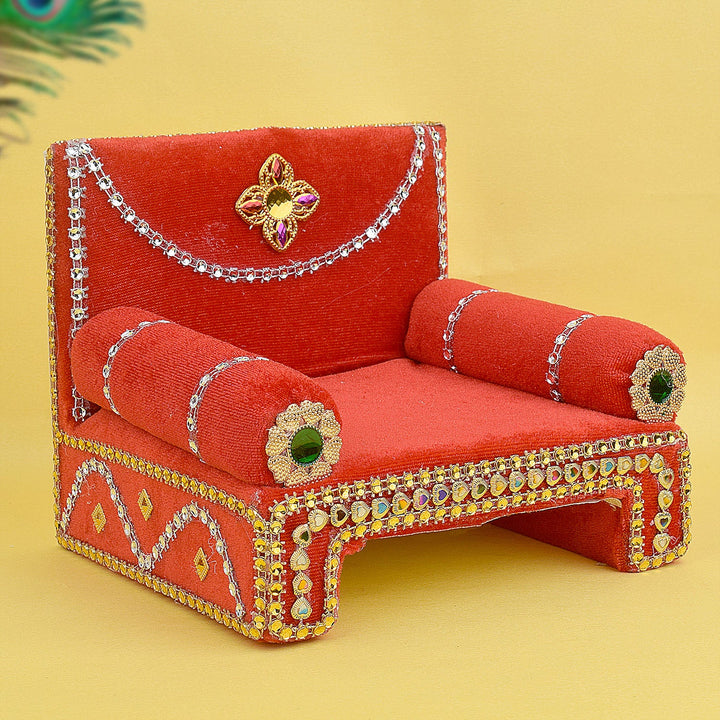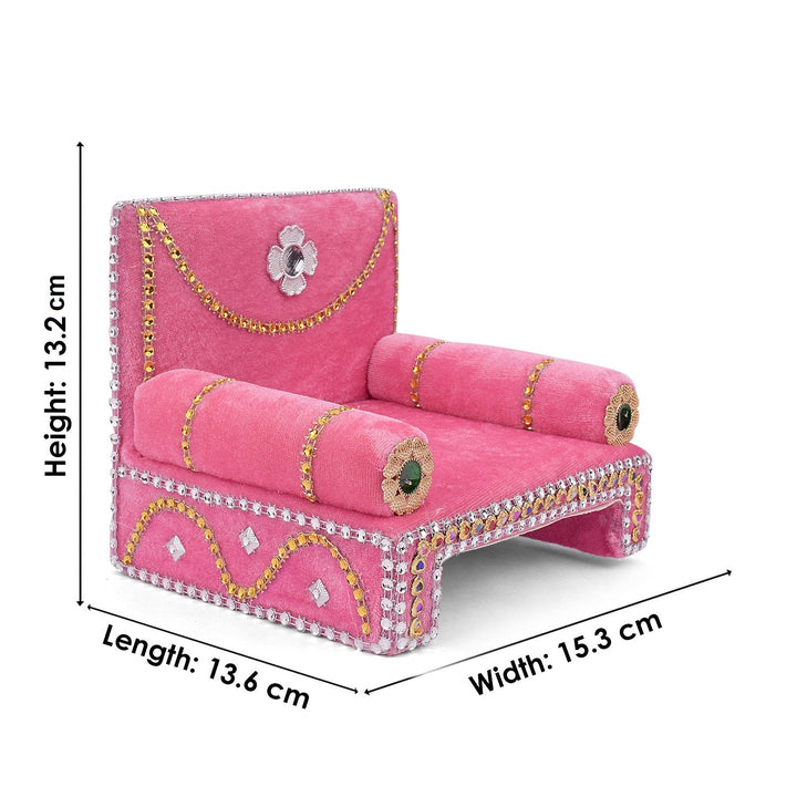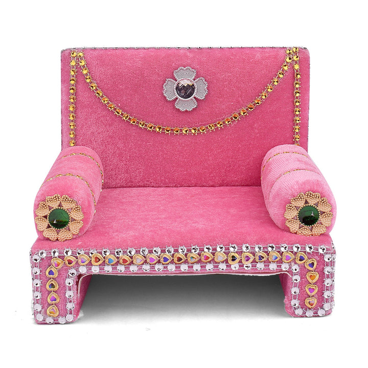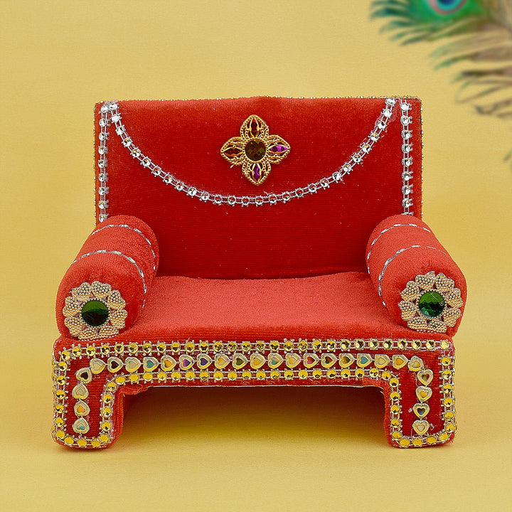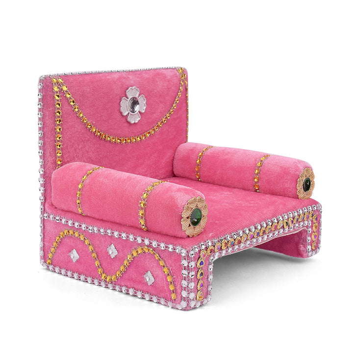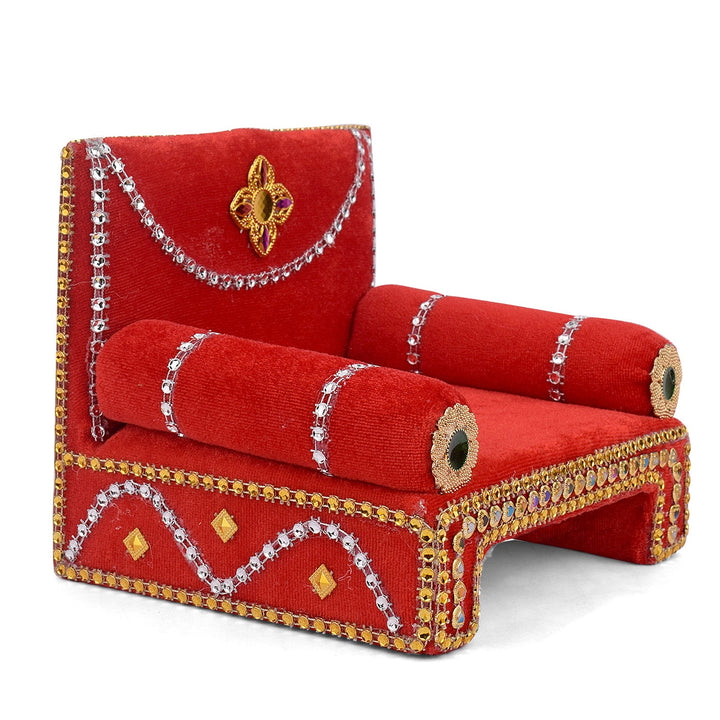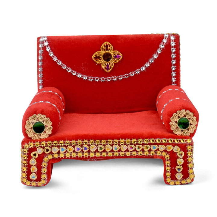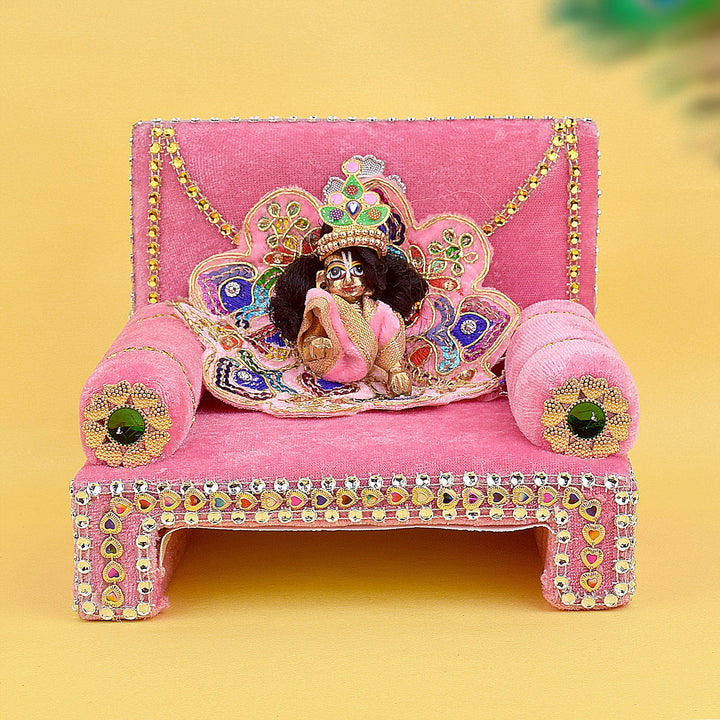 As you place your Laddu Gopal on this sacred throne, watch as the velvet embraces the little lord, showering blessings and grace upon your home. Its charming allure and captivating design make it a true centerpiece of devotion, adding a touch of splendor to your worship space.