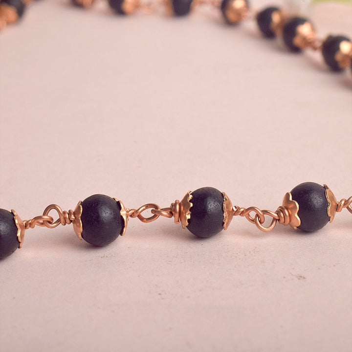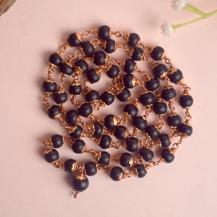 Buy online | 8mm Karungali Mala with Copper Capping | Satvikworld.com