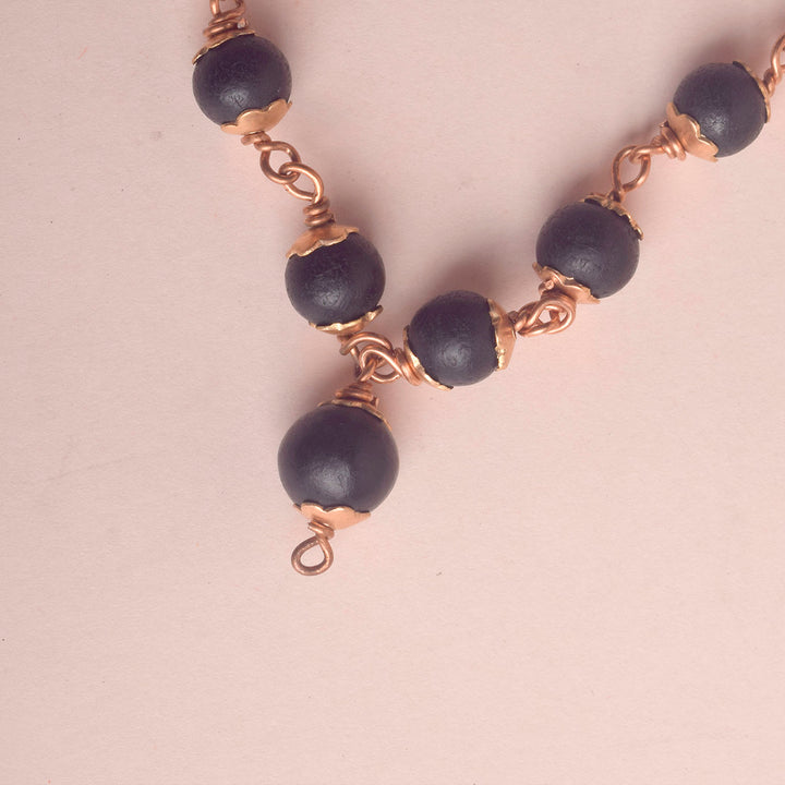 About Product The 8mm Karungali Mala with Copper Capping is a sacred and powerful mala crafted from authentic Karungali (Ebony) wood beads, revered in Indian spiritual traditions for their shielding and grounding properties. The addition of pure copper capping on each bead enhances the vibrational energy of the mala, making it ideal for spiritual practitioners, meditators, and individuals seeking protection from negativity.