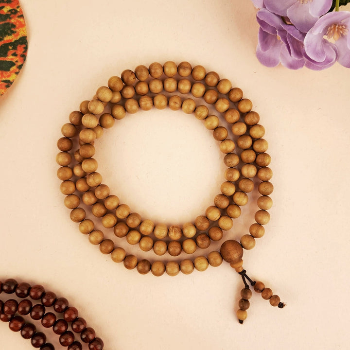 A Sandalwood Mala is a traditional and sacred meditation tool used in various spiritual and religious practices, particularly in Hinduism and Buddhism. It consists of a string of beads, typically 108 in number, although there are variations with different bead counts. Each bead is made from genuine sandalwood, specifically from the heartwood of the sandalwood tree (Santalum album).