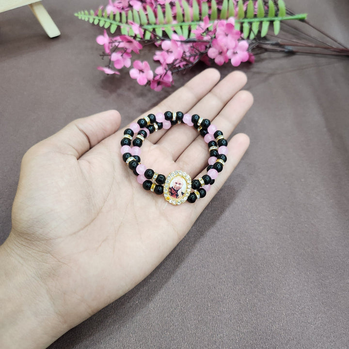 Black And Baby Pink Pearl Bracelet with Jai Guruji Swaroop Handmade Bracelets for Men and Women