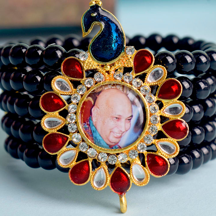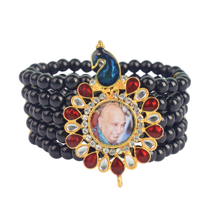 Buy Online | Black Five Layer Guruji Swaroop Peacock Bracelet | satvikworld.com – Satvikworld.com