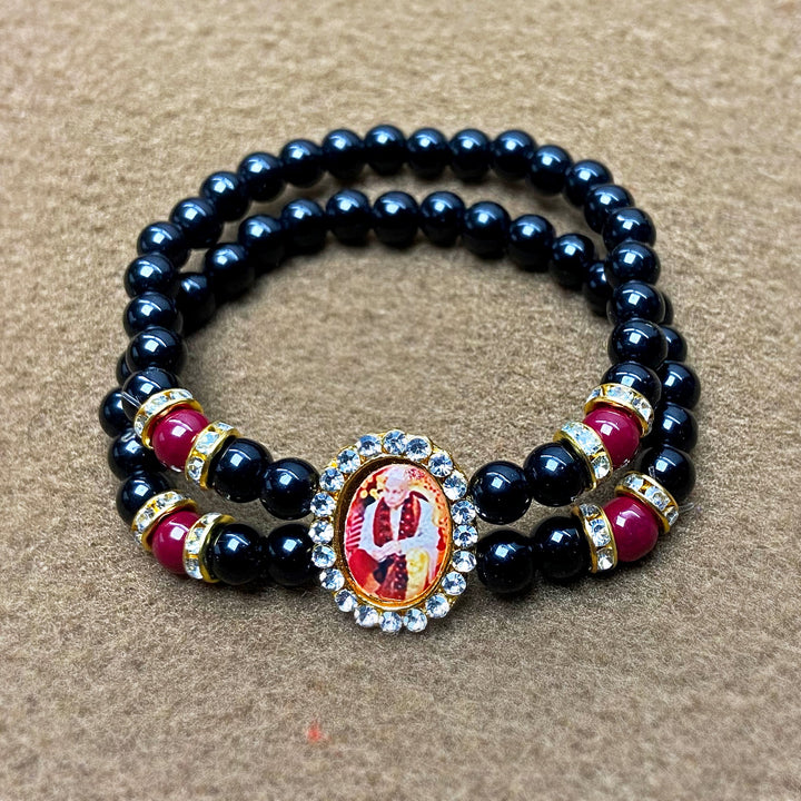 Black Round Pearl Bracelet with Jai Guruji Swaroop