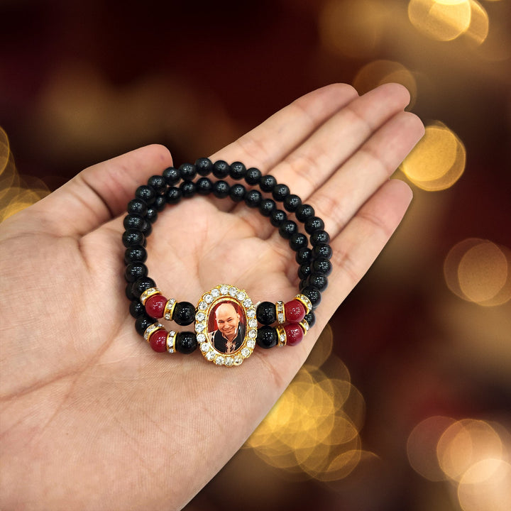 About Product: Guruji Stone Bracelets removes negative energy and and uplift the spiritual, mental and physical Health. Easy to wear, Skin Friendly. You can Gift this Beautiful Beads Bracelets to your family, friends, relative, neighbor on religious occasion like : pooja, kirtan, return gift idea, housewarming, home inauguration, Puja and other. Very beautiful bracelet made of artificial ceramic stones with smooth round finish, each bracelet is handpicked for quality check, Jai Guruji is Photo also there in the bracelet. This is Red and Black matches trend with tradition. Proudly Made in India for Our Devotees.