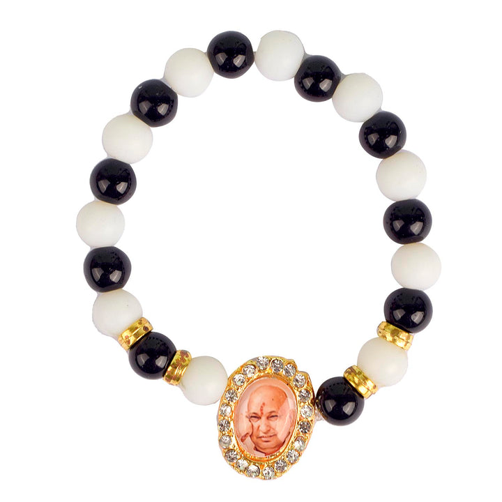 Black & White Beads Single Layer Guruji Swaroop Bracelet