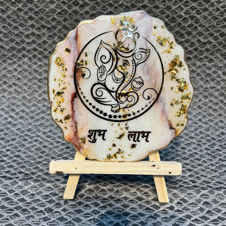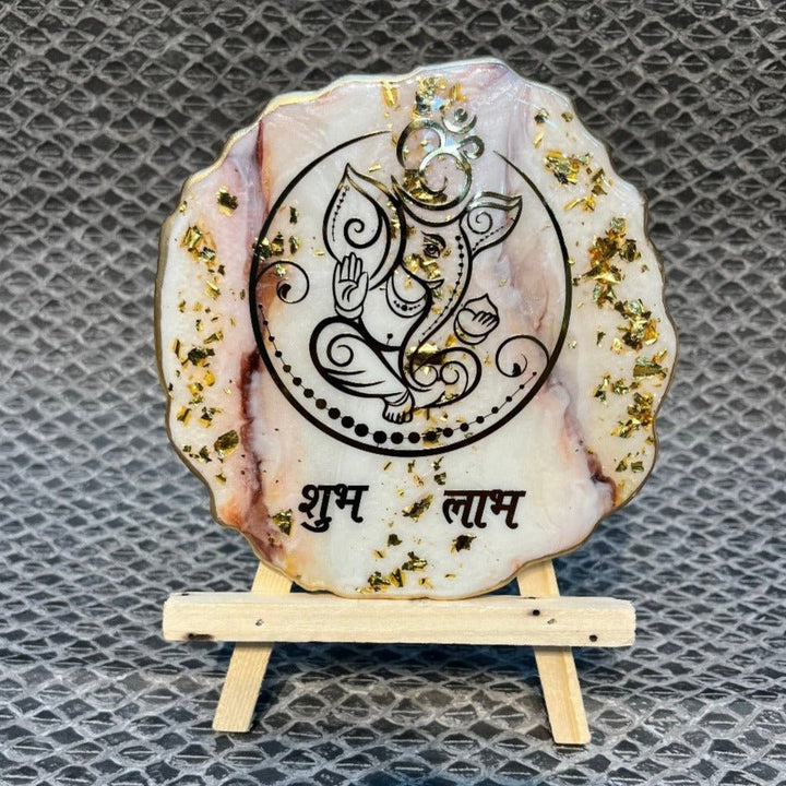 Ganesha Shubh Labh frame | epoxy resin Shubh Labh | Ganesha frame with stand | decorative Shubh Labh decor | pooja room frame | festive home decor | Ganpati wall frame | Shubh Labh for office | resin Ganesha frame |