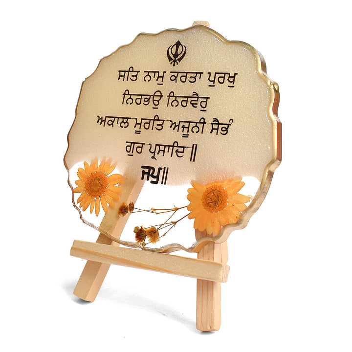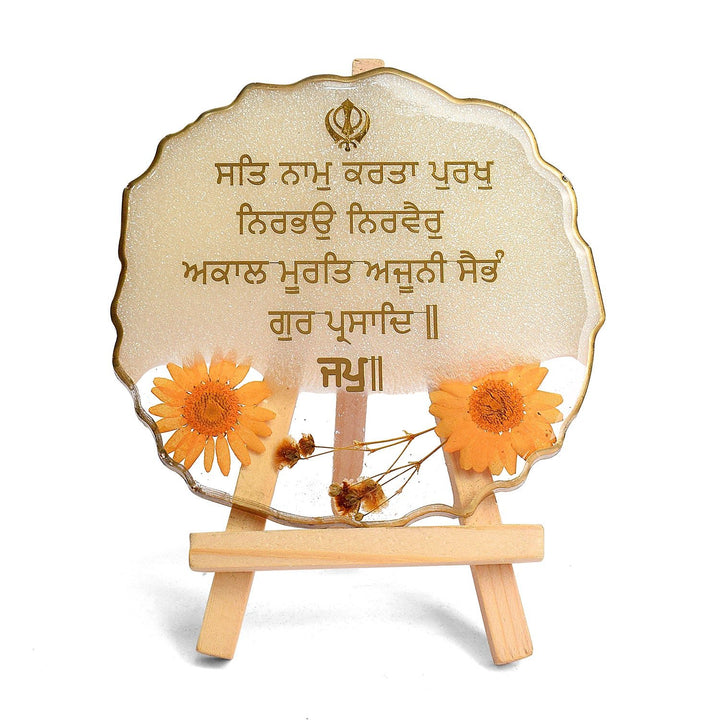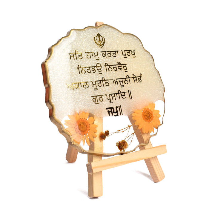 Ik Onkar mantra frame | decorative Sikh mantra frame | epoxy white mantra frame | spiritual home décor | Ik Onkar table frame | religious mantra frame | epoxy frame with stand | Ik Onkar gift item | Sikh décor frame |