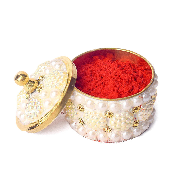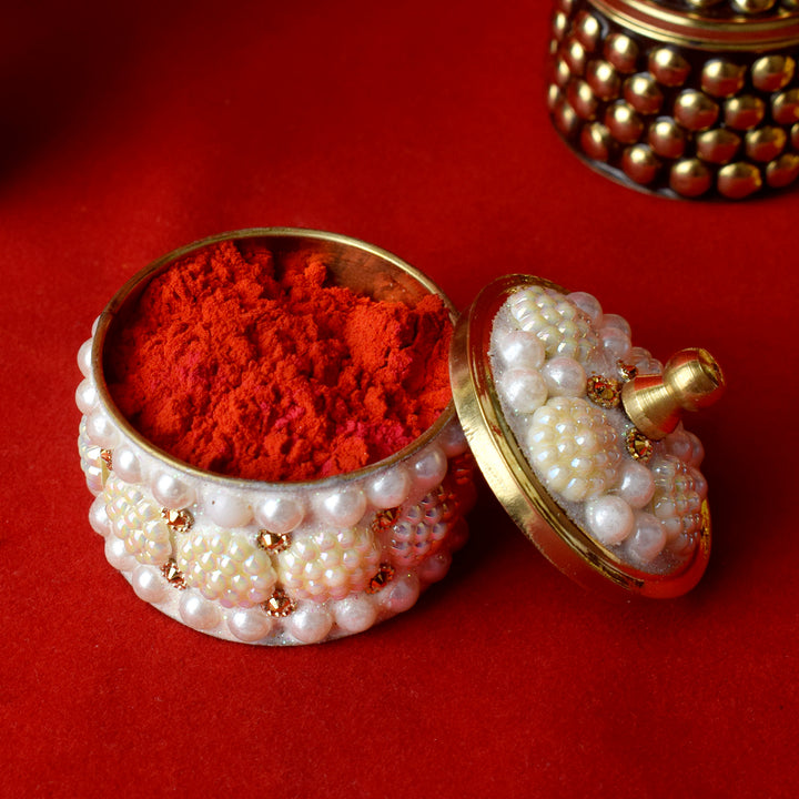 Haldi Kumkum Puja Items Holder is a Container This Decorative and beautifully Crafted auspicious haldi Chawal(Rice) Holder made up of High Quality Material, Can be used for Worship at home temple office etc, also an ideal gift to relative and love ones. It is durability and is easy to clean.