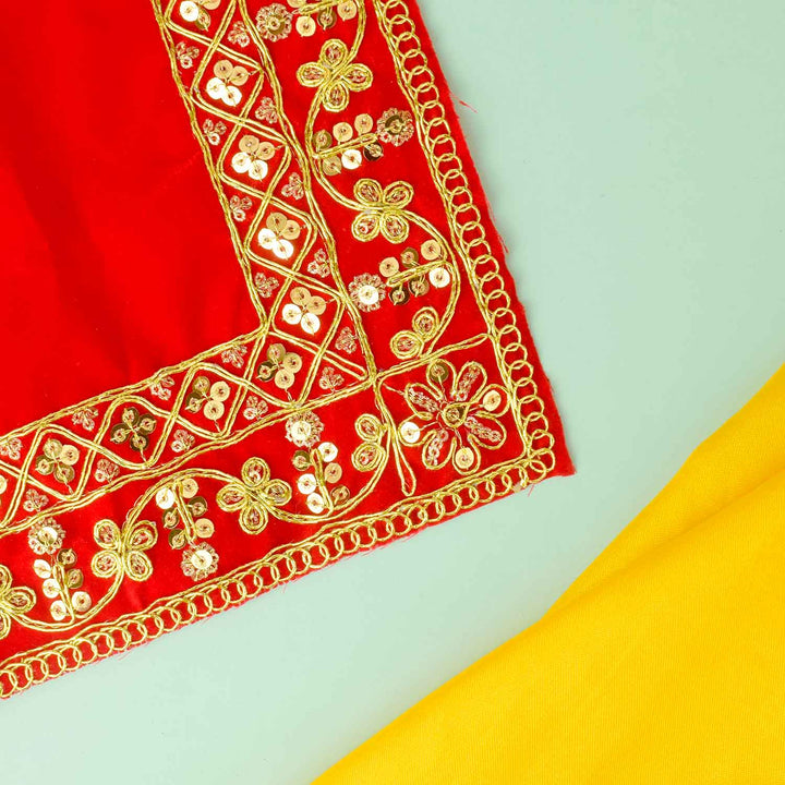 Designer Aasan 16x16 | Velvet Puja Mat Set | Pooja Aasan Pack of 4 | Golden Lace Aasan | Chowki Cover for Pooja | Velvet Aasan for Mandir | Spiritual Prayer Mat | Mandir Aasan Cloth | Religious Aasan Velvet | Decorative Puja Cloth