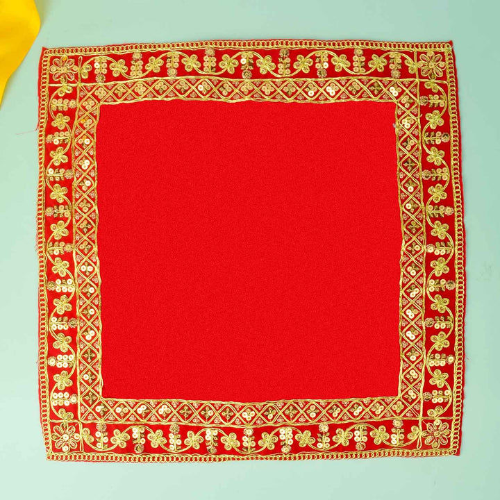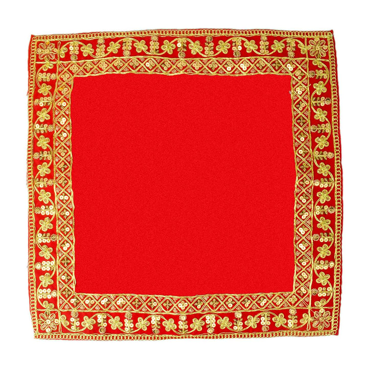 Package Content: 4 Pcs of Designer Border Velvet Aasan 16x16 Inch with Golden Lace all over the Border