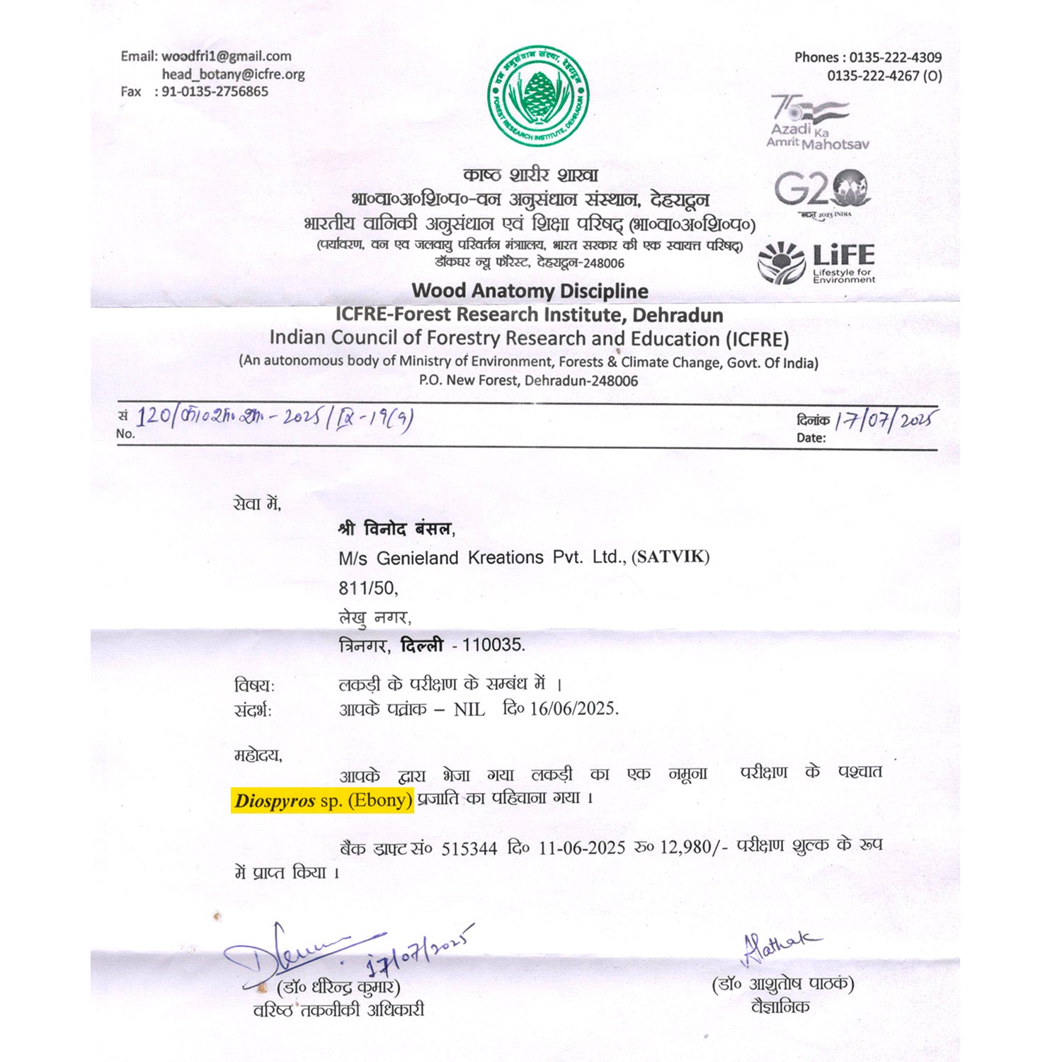 • Tested by : Authenticity certified by Central Wood Testing Laboratory The Rubber Board (Ministry of Commerce & Industry Govt. of India) and ICRE – Forest Research Institute, Dehradun – ensuring genuine Karungali wood quality.