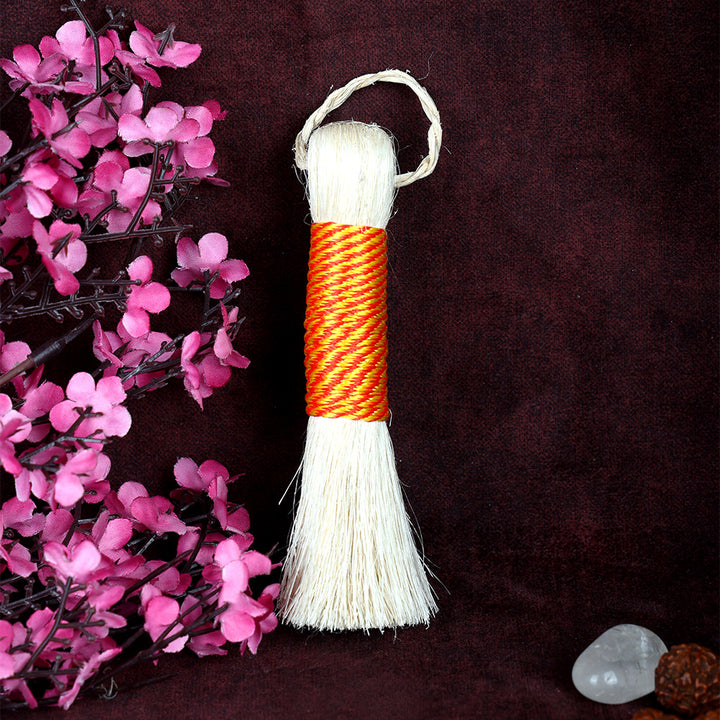 The Banana plant is a symbol of prosperity and holds a special place in ancient scriptures, associated with Lord Krishna and Goddess Lakshmi. Om Shanthi Puja Broom, crafted from pure Banana Stem Fiber, is designed for keeping your Puja space clean and dust-free. Its aesthetic design ensures thorough cleaning of every nook and corner, with an 12 centimeter height and a weight of approximately 25 grams. Keep your Puja space pure and invoke the blessings of Goddess Lakshmi with the Om Shanthi Puja Broom, a versatile tool for cleaning Puja rooms.