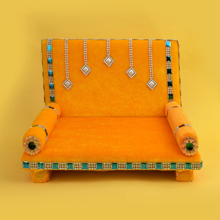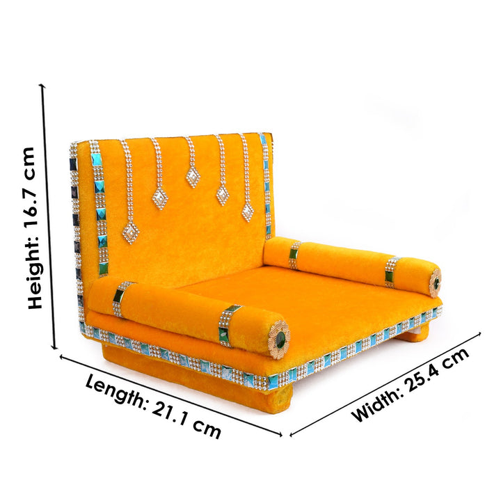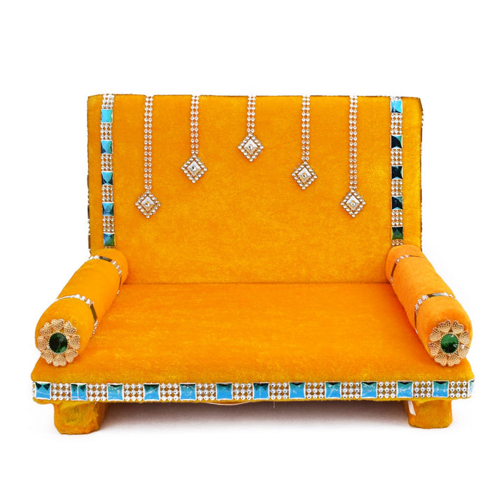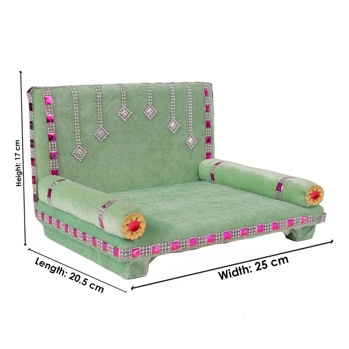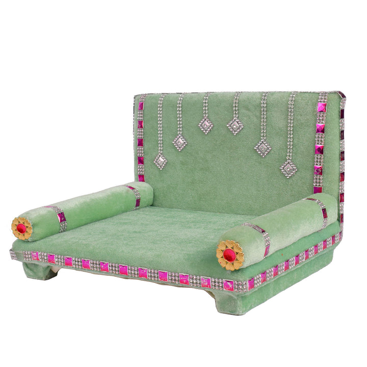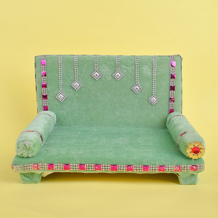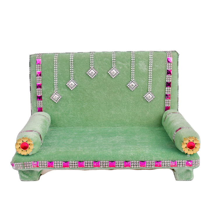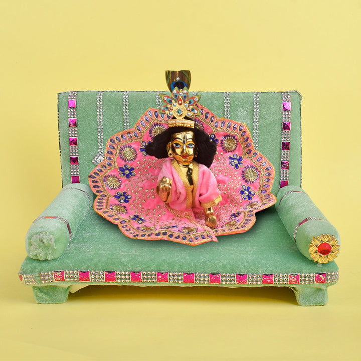 As you place your Laddu Gopal on this sacred throne, watch as the velvet embraces the little lord, showering blessings and grace upon your home. Its charming allure and captivating design make it a true centerpiece of devotion, adding a touch of splendor to your worship space.