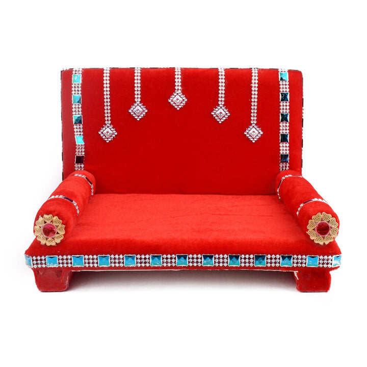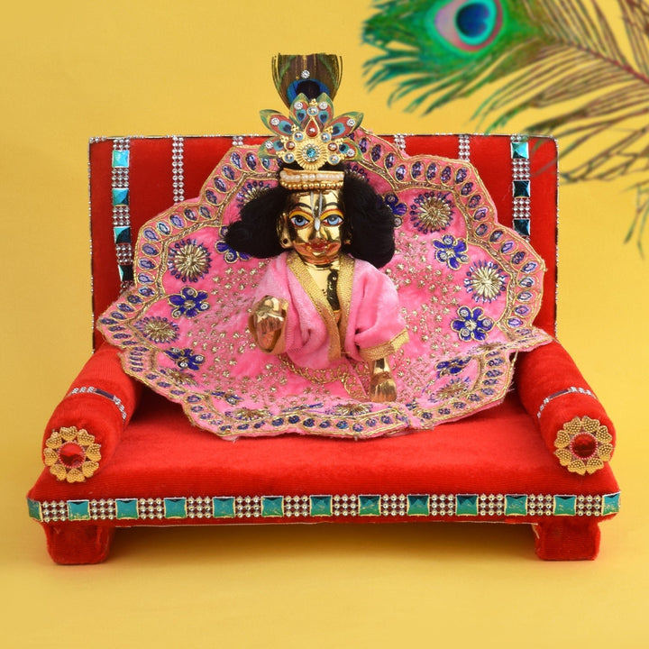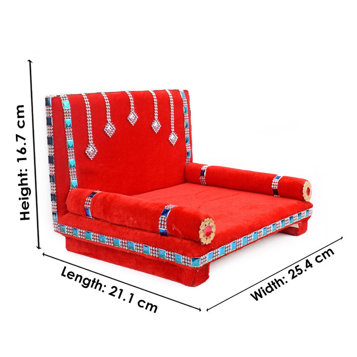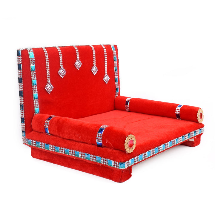 laddu gopal velvet singhasan | krishna velvet pooja throne | large velvet seat for kanha | divine bal gopal singhasan | red velvet deity throne | velvet singhasan for mandir | sacred pooja accessories | pooja room velvet singhasan | traditional gopal throne | devotional pooja furniture