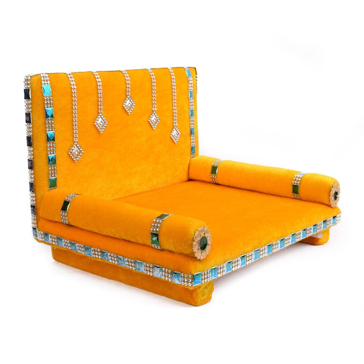 Step into the realm of divinity with our exquisite Laddu Gopal Velvet Singhasan, a regal abode for your beloved deity. Crafted with utmost care and adorned with intricate details, this singhasan exudes an aura of celestial elegance. The soft velvet caresses the divine idol, providing a luxurious and comfortable seat.