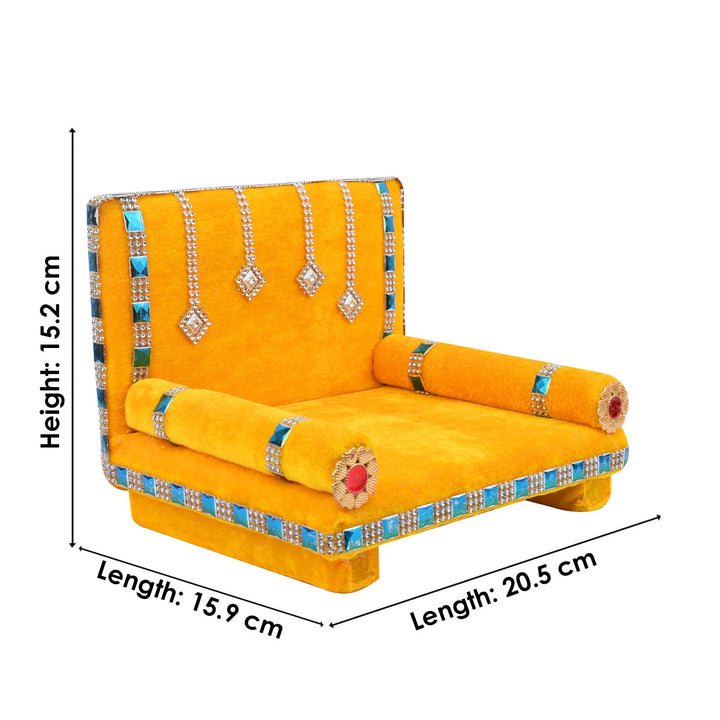 As you place your Laddu Gopal on this sacred throne, watch as the velvet embraces the little lord, showering blessings and grace upon your home. Its charming allure and captivating design make it a true centerpiece of devotion, adding a touch of splendor to your worship space.