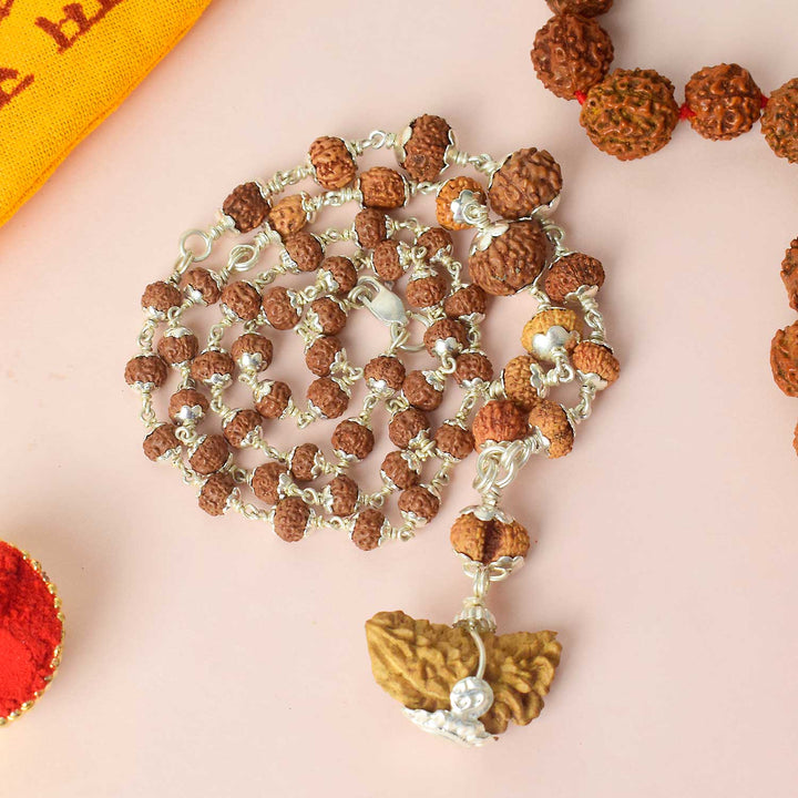 • Material :  Certified 1 to 14 Mukhi Siddh Rudraksha Mala with Silver Capping (Indo)