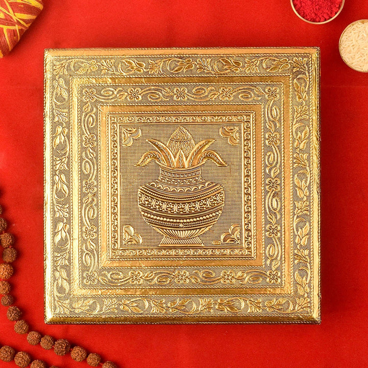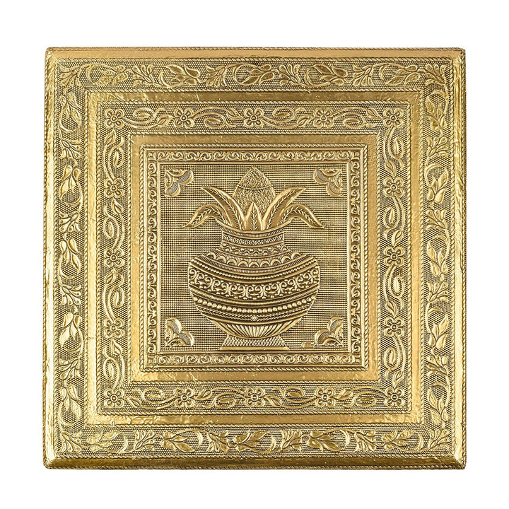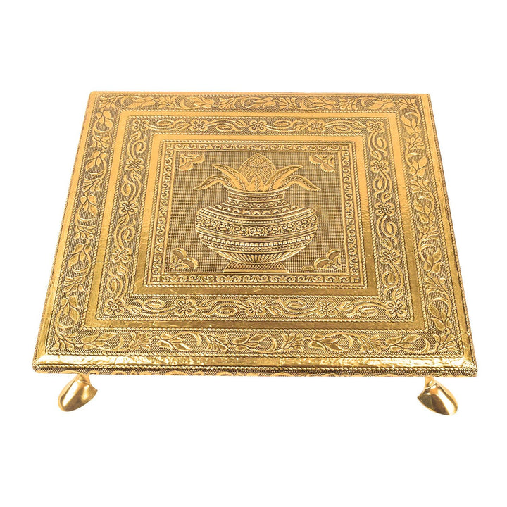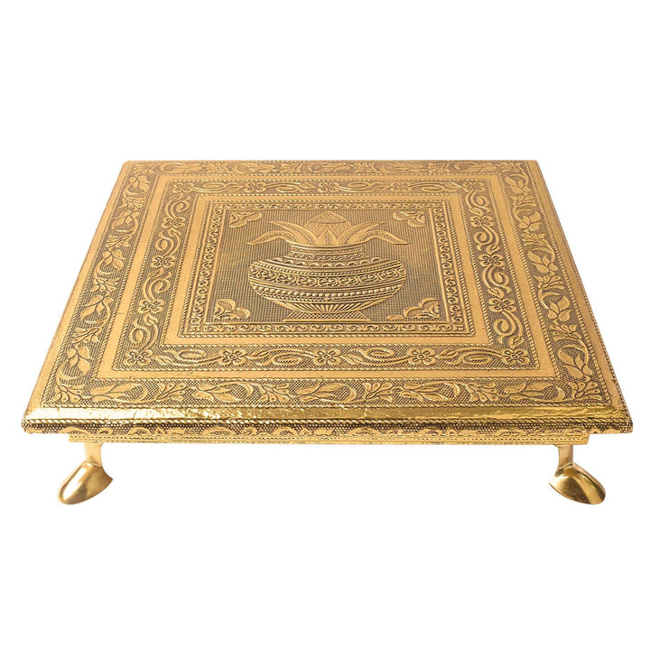 • Description: Symbolic of prosperity and auspicious beginnings, the Kalash design enhances the spiritual resonance of the chowki, making it a meaningful addition to various occasions, including religious ceremonies, weddings, and festive celebrations. With its compact yet sturdy dimensions of 10x10 inches, this chowki offers a reliable base for your sacred rituals.