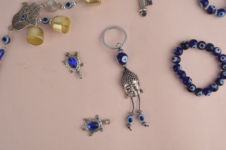 Alluring Silver Buddha Keychain with Evil Eye | Buy Online | Satvikworld.com