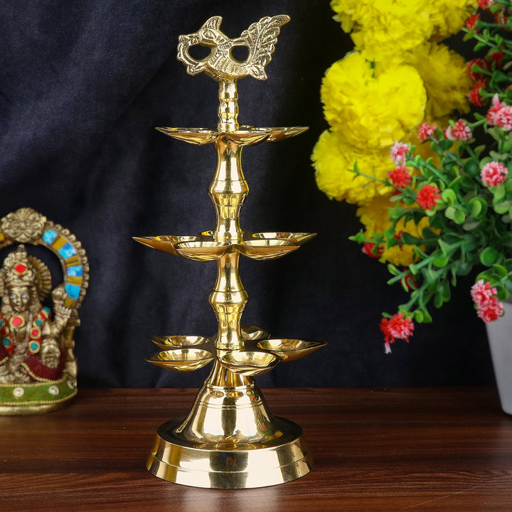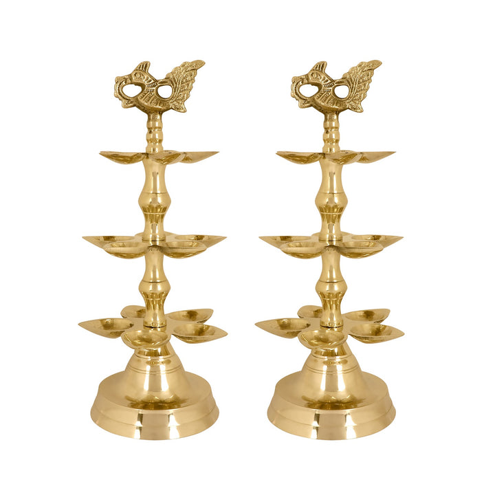 Brass 3 Step Panchmukhi Peacock Kerala Diya – Satvikworld.com