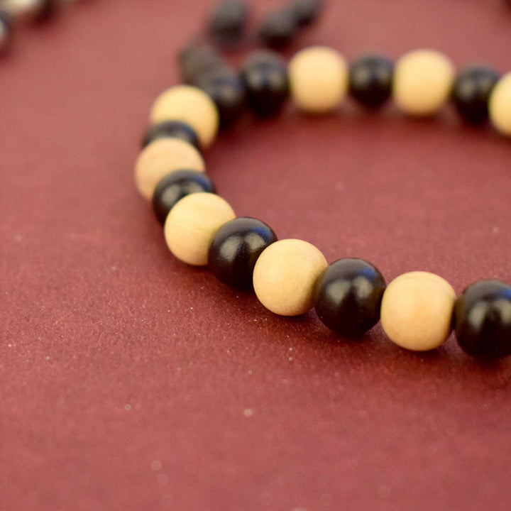 Ebony wood (Karungli) is known for its strength and protective qualities, while white sandalwood symbolizes purity, calmness, and divine connection. Together, they create a harmonious blend ideal for meditation, daily wear, or spiritual rituals.