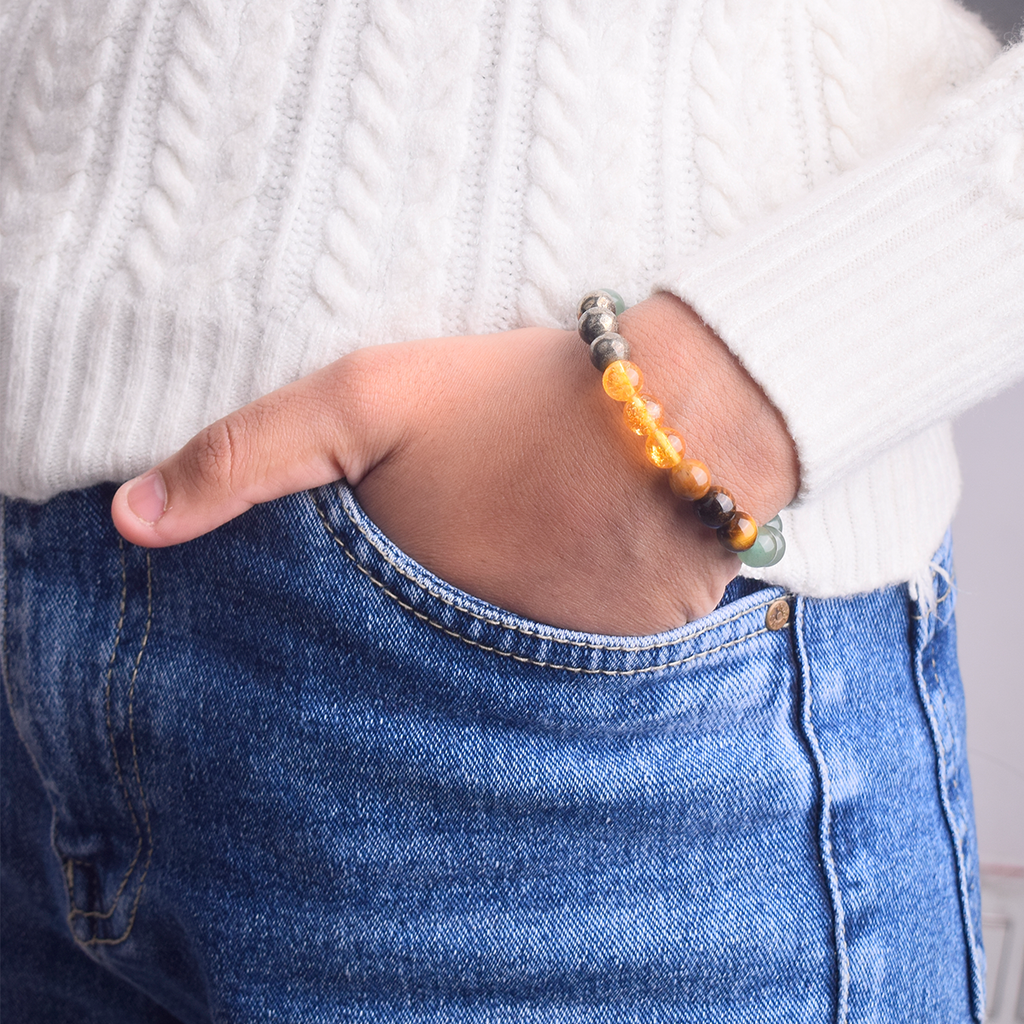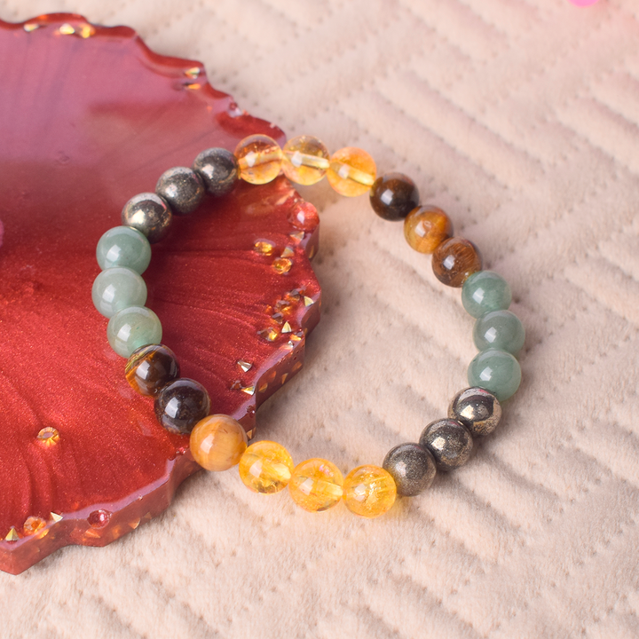About Product: The Money Magnet Bracelet for Wealth & Success is a powerful fusion of four prosperity-enhancing gemstones — Pyrite, Tiger Eye, Citrine, and Aventurine. Each stone is carefully selected for its unique energy vibration that attracts wealth, abundance, and success into your life.