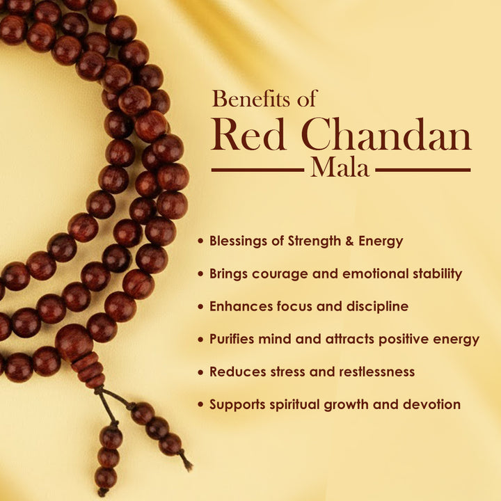 Red Sandalwood Jap Mala | Chandan Mala for Meditation | Natural Red Sandalwood Rosary | Handmade Chandan Beads Mala | Sandalwood Mala for Prayer | Mala for Hanuman Mantra |