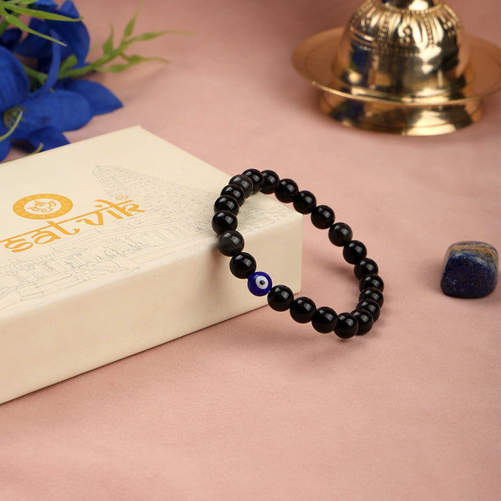 Buy Black Obsidian Evil Eye Healing Stone Bracelet | Satvikworld.com