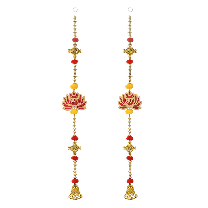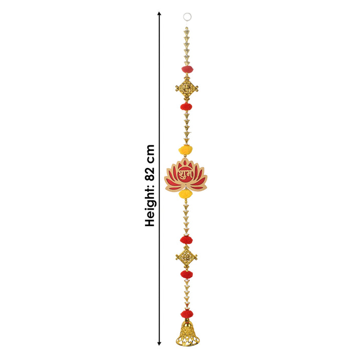 Adorned with a hanging bell, it creates a soothing sound that adds a peaceful ambiance to your entrance, pooja room, or wall decor. Ideal for festivals like Diwali, Navratri, Ganesh Chaturthi, or for daily spiritual use, this wall hanging is both a decorative piece and a Vastu-friendly element.Whether you're decorating your home, gifting for a housewarming, or enhancing your prayer area, this elegant hanging brings a harmonious blend of tradition, symbolism, and beauty.