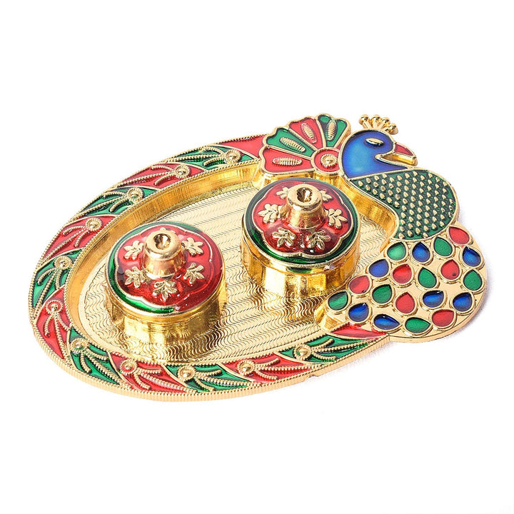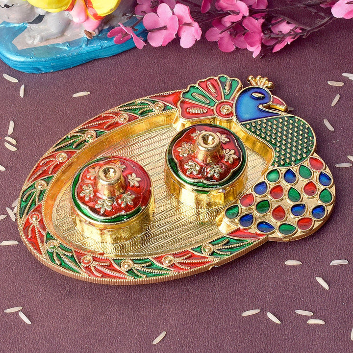 Kumkum Holder Featuring Artistic Peacock – Satvikworld.com