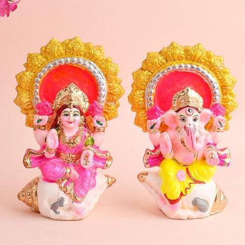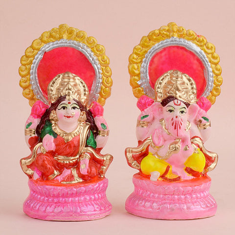 Sacred Diwali Tradition: Clay Statues of Laxmi and Ganesh for Auspicious Puja