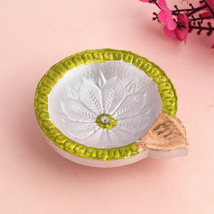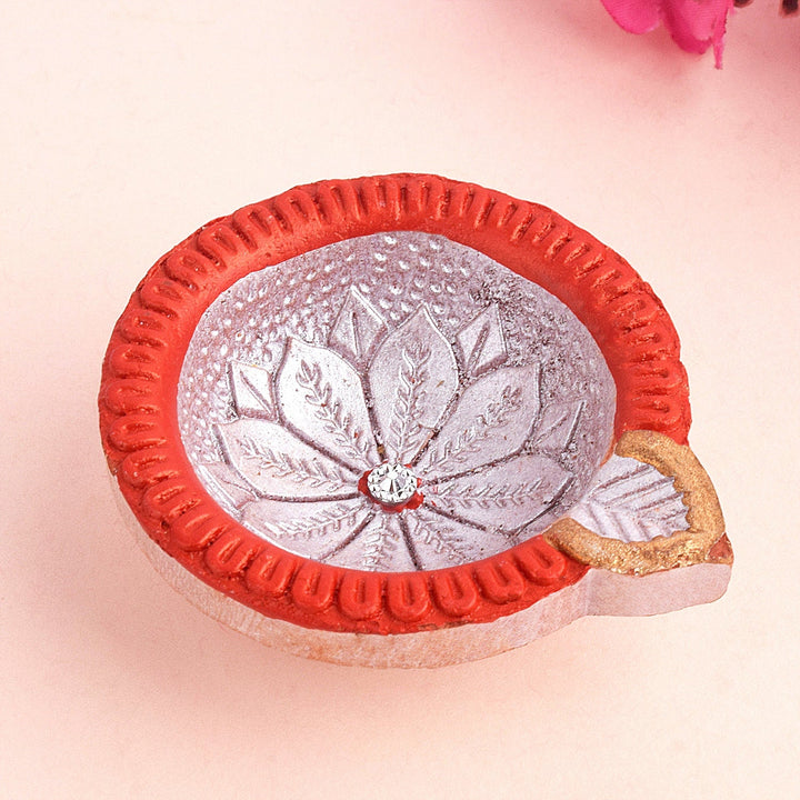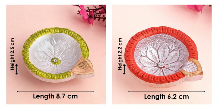 • Product Details: Material: Clay/Terracotta Dimensions: Regular Diya Height: 2.2cm, Length: 6.2cm, Large Diya Height: 2.5cm, Length: 8.7cm, Weight: 700gram, Finish Type: Glossy.