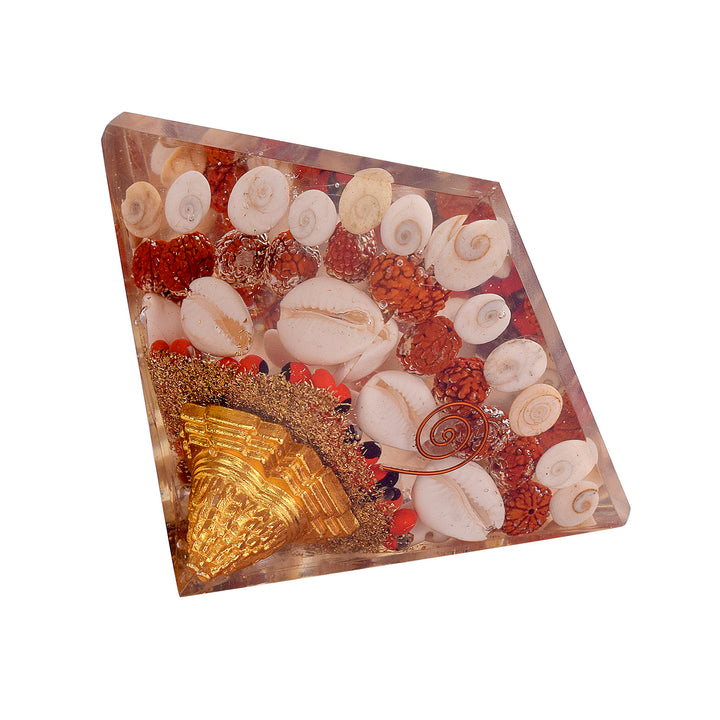 • Orgone Gomti Chakra Pyramid: Fikup's natural Orgone Pyramid, featuring Gomti Chakra and Shree Yantra for powerful energy alignment.