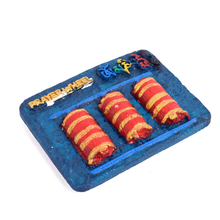 About the Product: Enhance your home with the Prayer Wheel Buddha Fridge Magnet. This beautifully crafted piece combines spiritual significance with practical use, perfect as a decorative souvenir from India.