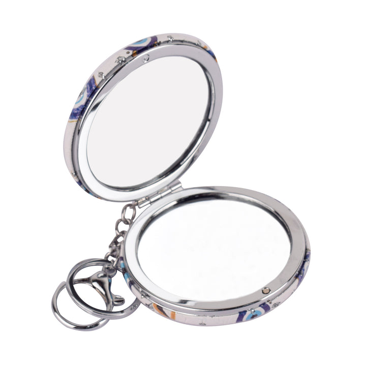 Round Evil Eye Keychain with Foldable Mirror