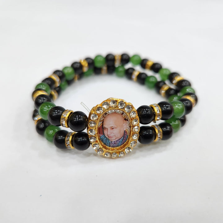 • Item Name:  Black And Green Round Pearl Bracelet with Jai Guruji Swaroop Handmade Bracelets for Men and Women.