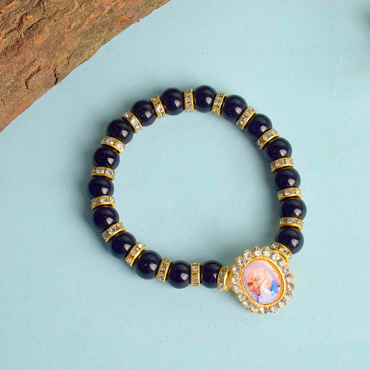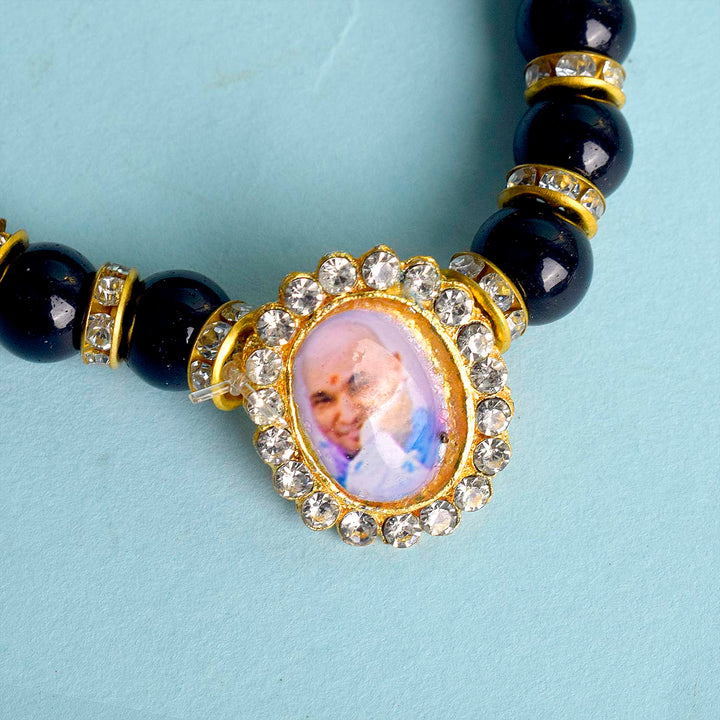 Buy Online | Black Golden Stud Single Layer Guruji Swaroop Bracelet | satvikworld.com – Satvikworld.com