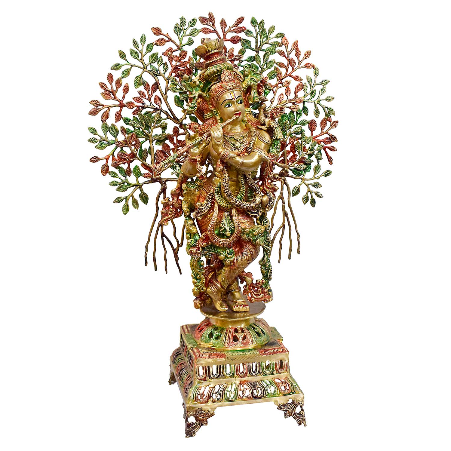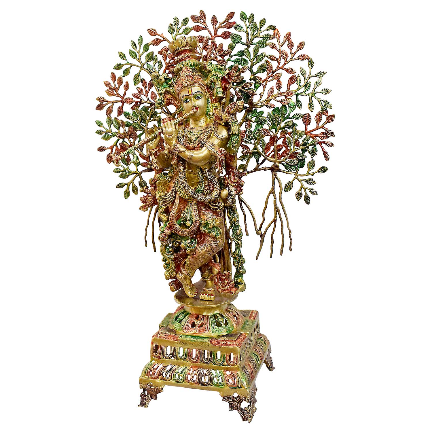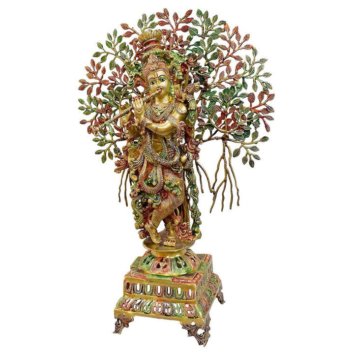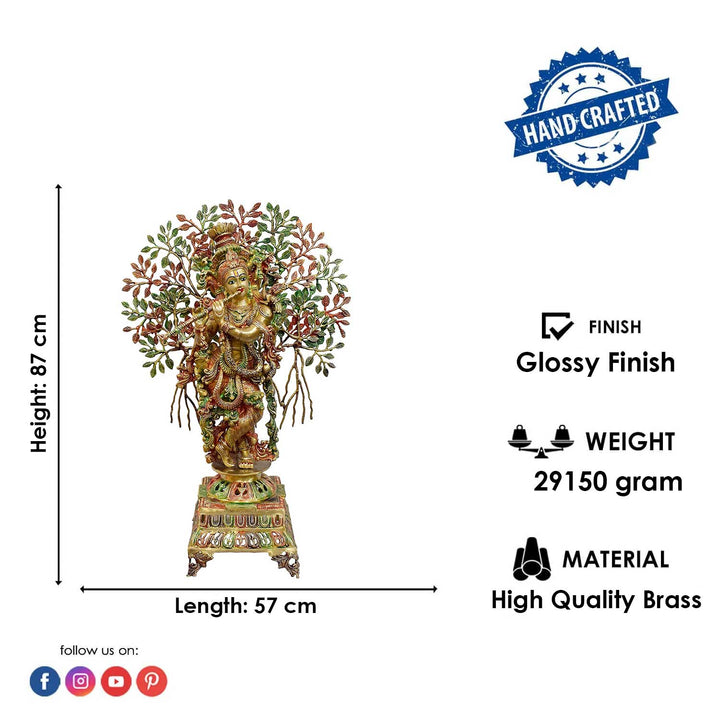 • About the Product: 34 Inch Large Brass Krishna Under Kalpavriksha Tree Statue