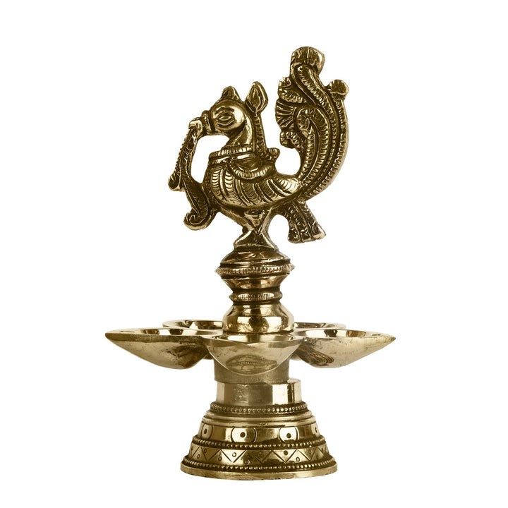 100% Pure Peacock Panchmukhi Brass Diya | Buy Online | Satvikworld.com