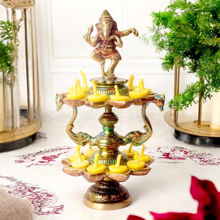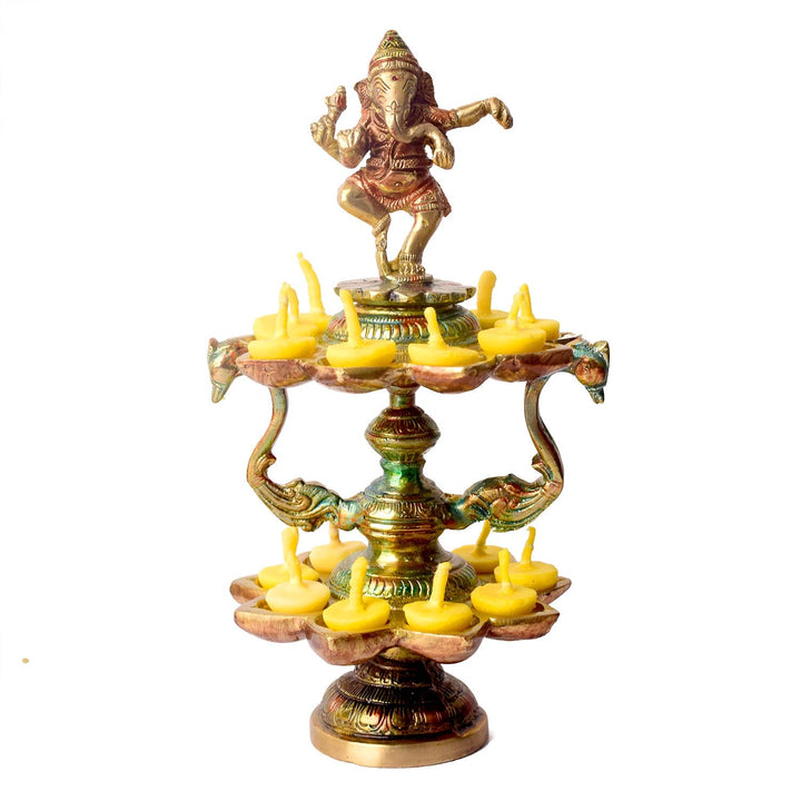 Handcrafted Brass 21 Wick Ganesha Diya – 2 Step Aarti Lamp