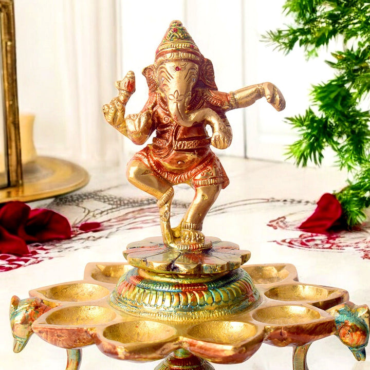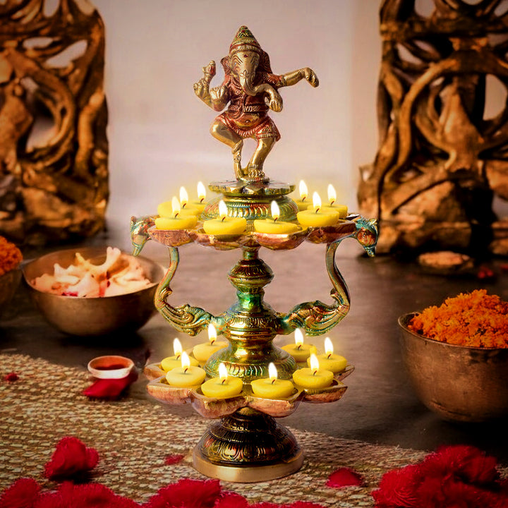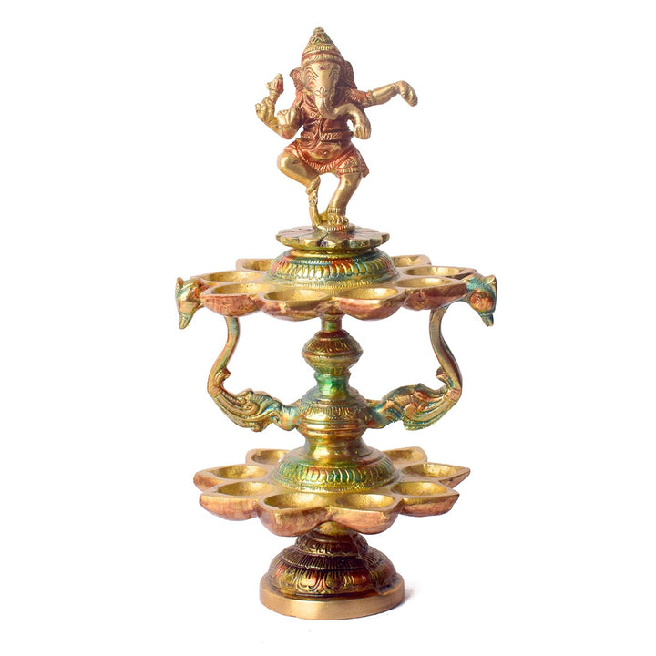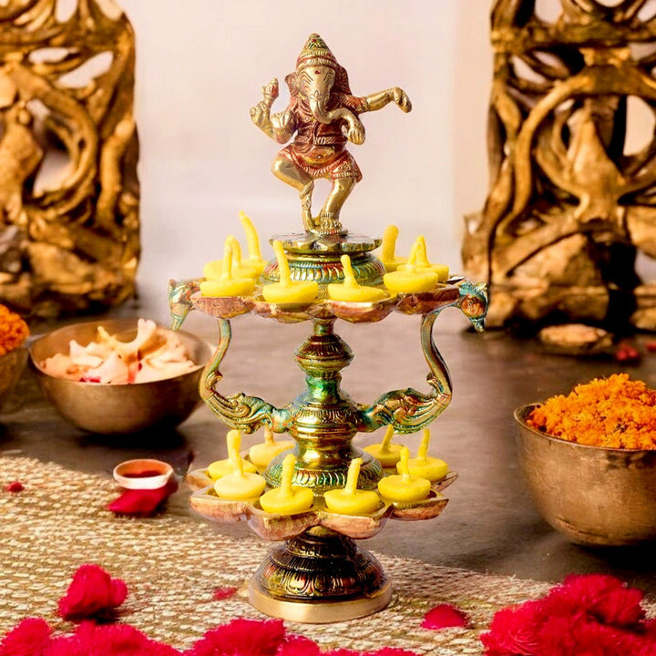 Buy Brass 21 Wick Ganesha Diya 2 Step Aarti Lamp | Satvikworld.com