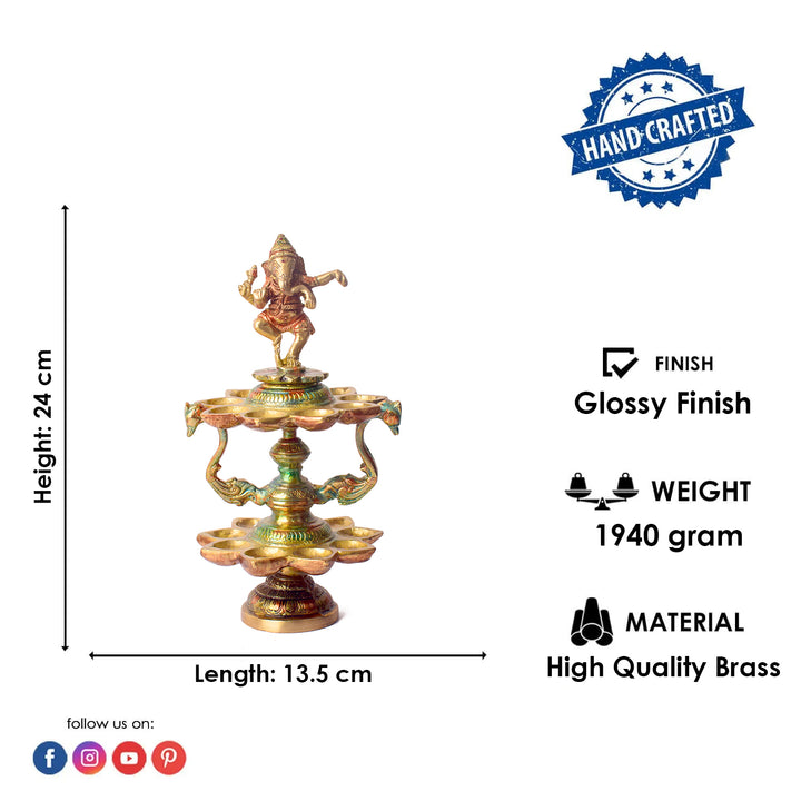 Item Name: Handcrafted Brass 21 Wick Ganesha Diya – 2 Step Aarti Lamp