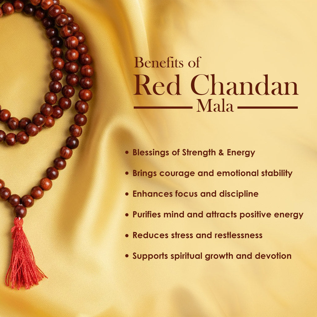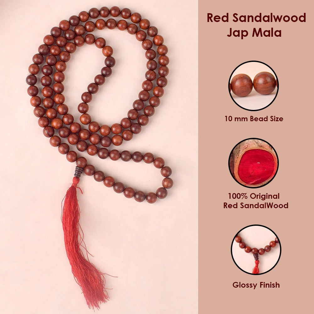• Product Details: Material: Original Red Sandalwood (Chandan) Jap Mala (Andhra Pradesh), Finish Type: Glossy