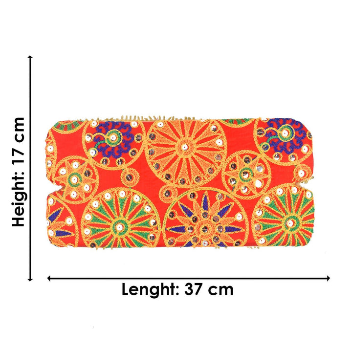 About the Product: Teej is a three-day Hindu holiday that is enthusiastically observed in many states. It is observed to honor the relationship between Lord Shiva and Goddess Parvati. Women observe "Nirjara Vrat" on this day in hopes of a long and fruitful marriage to their husbands.  The Jhula is symbolic, with women attempting to mimic the gods while seated on swings. Silver and gold ornamental strips in a variety of patterns and styles adorn this Teej jhula.