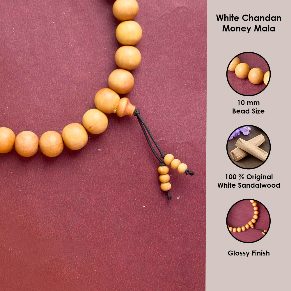 Buy 27 Bead White Chandan Money Mala for Wealth | Satvikworld.com
